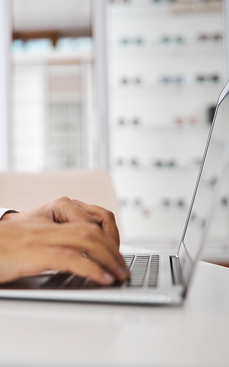 Optometrist on laptop PC